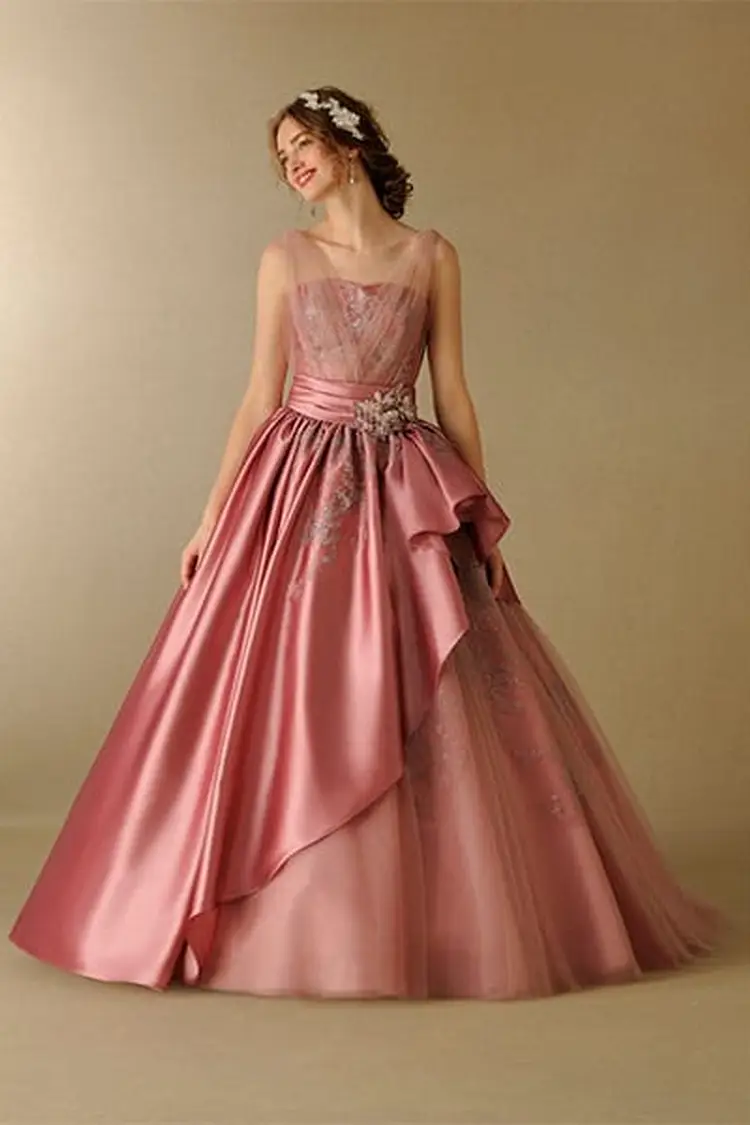カラードレス 販売 淡いピンク プリンセスラインドレス ウェディングドレスレンタルの東京ドレスレビュー